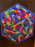 Characteristic of Vasarely’s universe, the work combines mathematical precision, vibrant color, and optical illusion within a captivating hexagonal structure. An essential piece for collectors of contemporary art and enthusiasts of visual geometry.